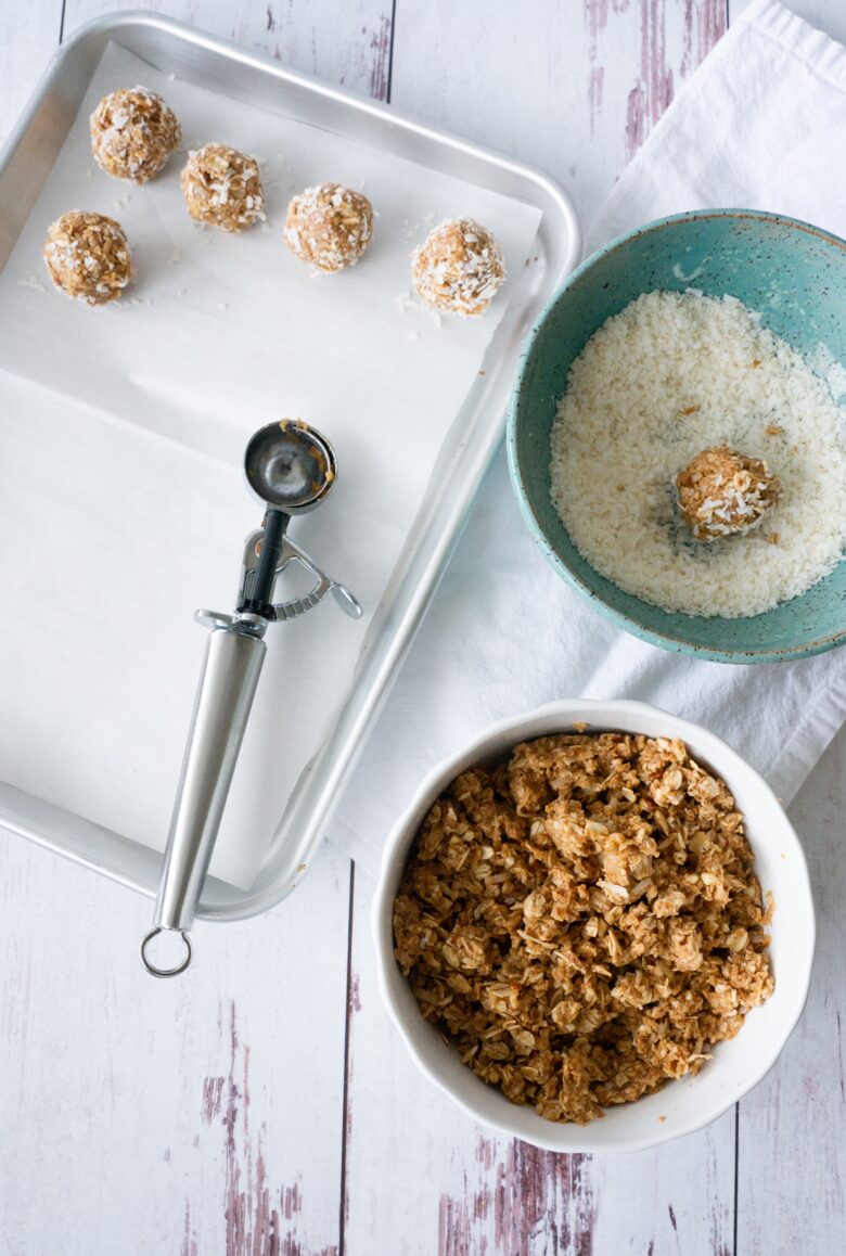 - Roll the formed bites in 1/2 cup coconut if desired.
