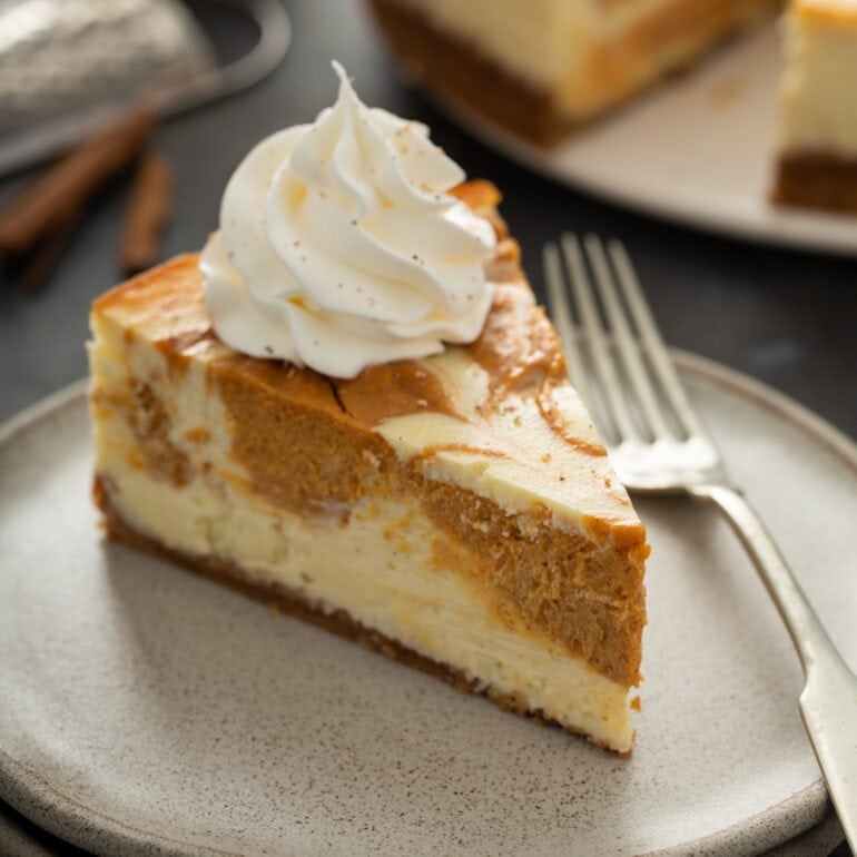 Silky cheesecake swirled with pumpkin spice filling for a showstopping fall dessert that feels additional particular.