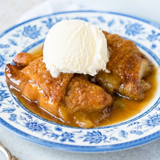 Flaky pastry wraps up candy apples in a bubbly syrup—this apple dumplings recipe seems like fall in each chunk.