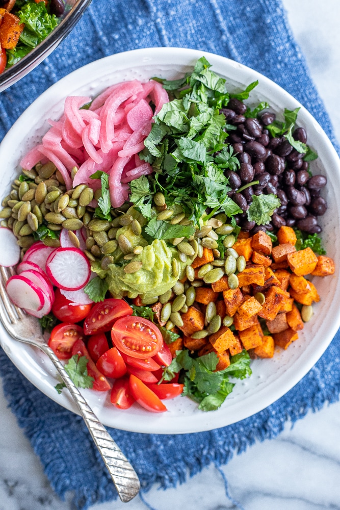 ROASTED SWEET POTATO AND BLACK BEAN KALE SALAD