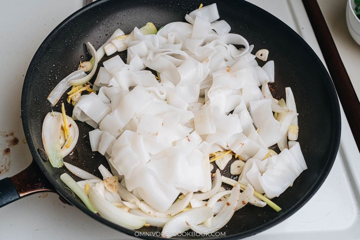 I by no means skimp on the oil as a result of rice noodles want sufficient fats to prepare dinner correctly. Eating places typically use a beneficiant quantity, and whereas I take advantage of much less at dwelling, there nonetheless needs to be sufficient to maintain the noodles from sticking or breaking up. The oil additionally carries the flavour of the aromatics all through the dish. If I’m not utilizing a nonstick pan, I add a bit extra oil since rice noodles have a tendency to stay to the pan.