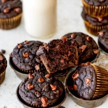 Tender, tender, and decadently chocolatey, these muffins get their richness from cocoa powder and chocolate chips, whereas Greek yogurt, applesauce, and a contact of maple syrup preserve them completely moist.