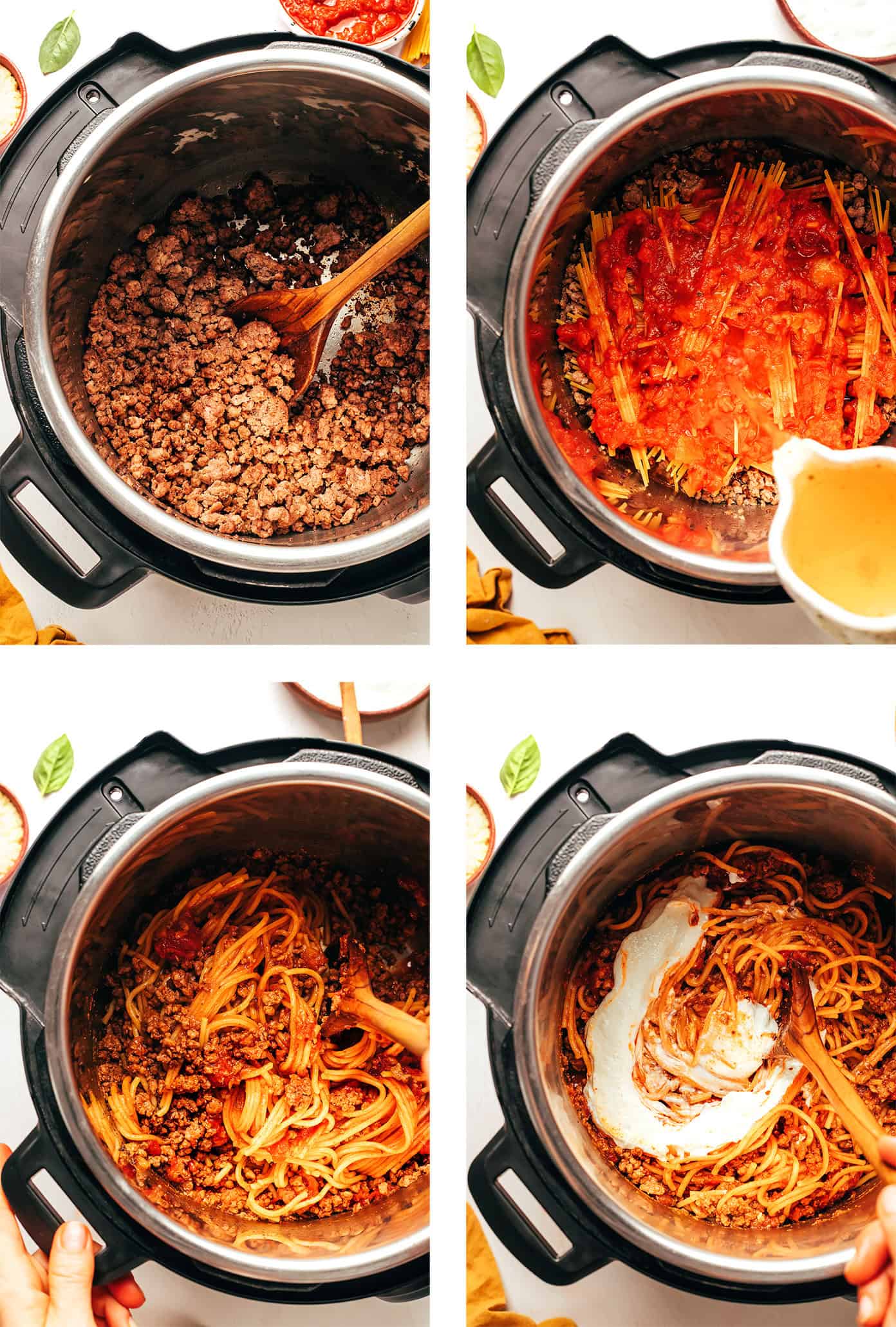 Undoubtedly! In a skillet over medium-high warmth, brown the bottom beef with olive oil and seasonings, then switch to the sluggish cooker. Pour within the marinara and 3 cups broth or water (you’ll want much less!). Stir to mix. Cowl and prepare dinner on LOW for 4-6 hours or HIGH for 2-3 hours. Stir within the spaghetti (damaged in half) over the last 30–45 minutes of cooking, ensuring it’s submerged. Examine and stir often; add additional broth if it appears too dry. As soon as pasta is tender, stir within the blended cottage cheese and Parmesan, cowl for five minutes to heat by means of, then serve.