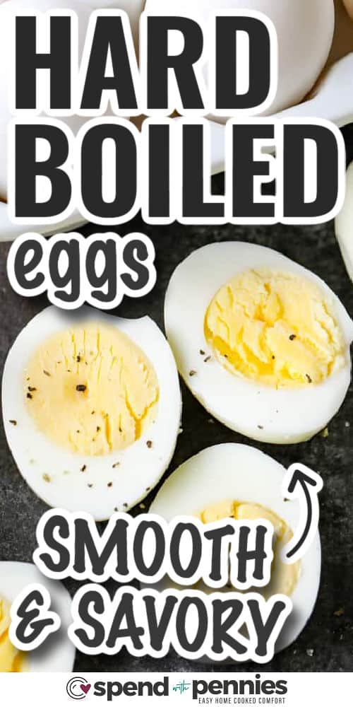 Perfect Hard Boiled Eggs cut in halves with writing
