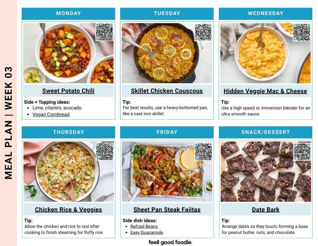 In case you’re in search of an simple, sensible and arranged meal plan that will help you plan out your meals for the week, these weekly meal plans are good for you. They embrace a meal for day by day of the week plus one breakfast thought and one snack or dessert thought you could make any day of the week.