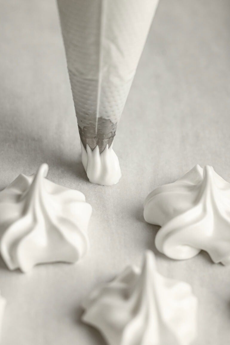 - Pipe: Switch the meringue batter to a big piping bag with a big star piping tip. Pipe onto the ready baking sheets.