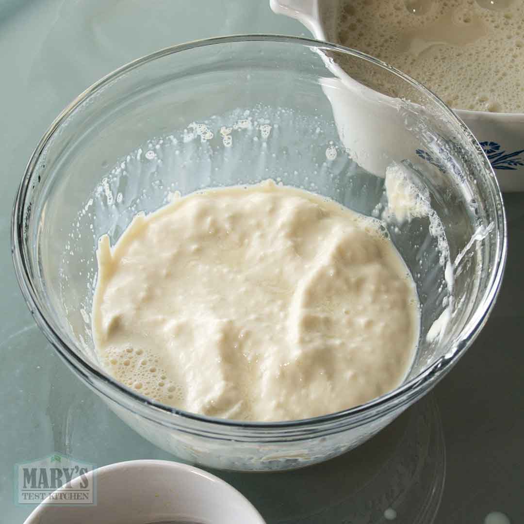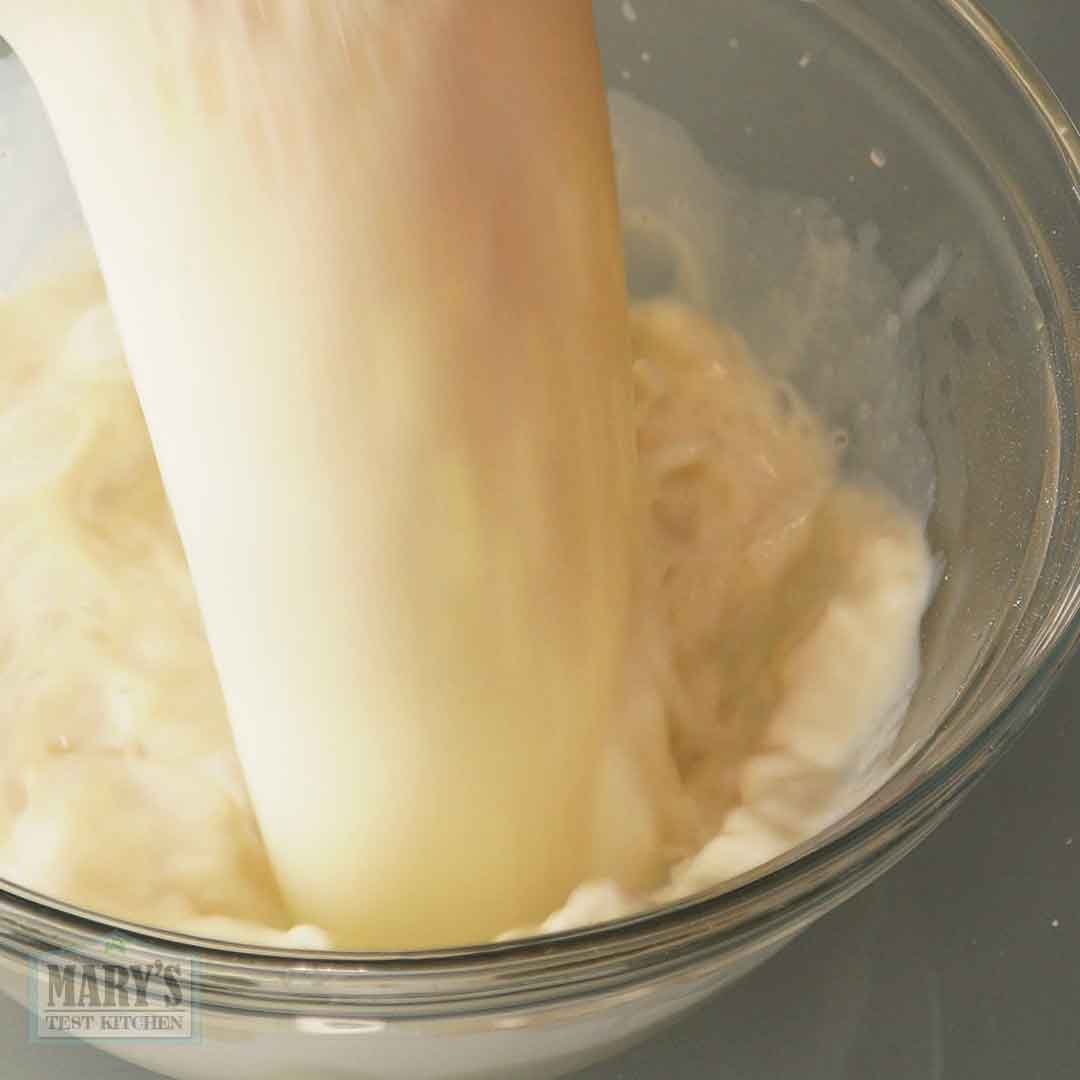 - Pour soy milk into the bowl from 30cm / 1 foot above to evenly distribute GDL.