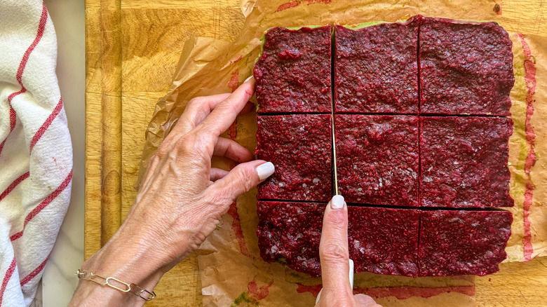 - Use a pointy knife to chop the bars into 9 squares.
