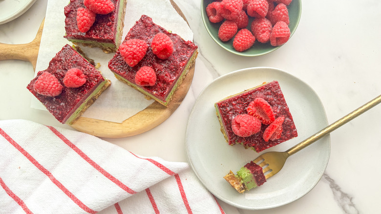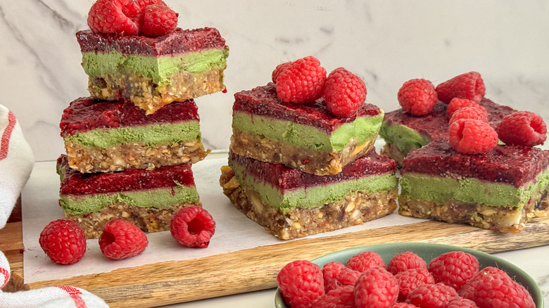 No-Bake Vegan Raspberry Matcha Bars Recipe
