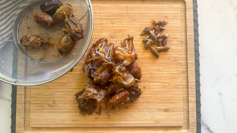 - Take away and discard the pits from the dates.