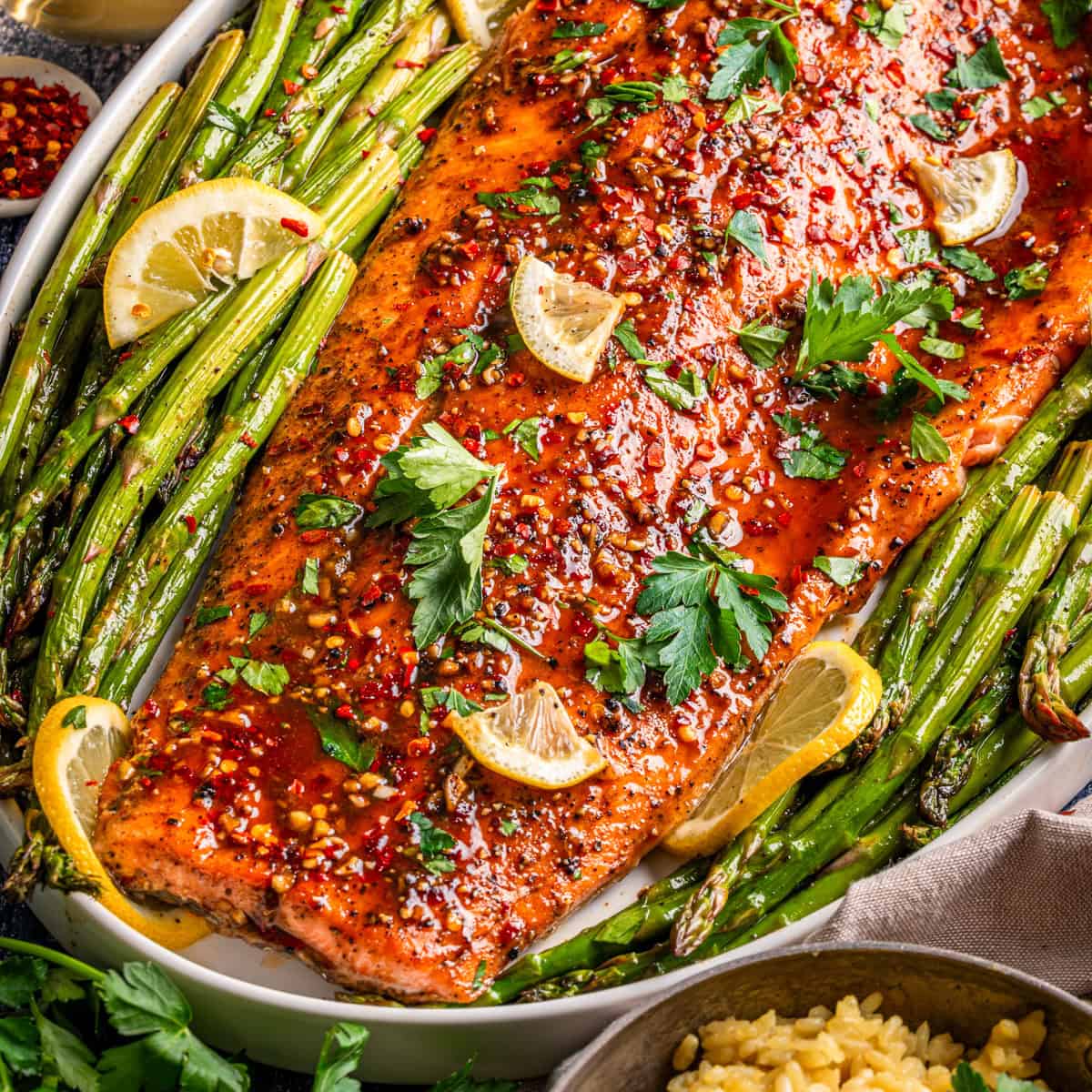 • You get an incredible presentation each time – pink salmon, vibrant inexperienced asparagus, shiny glaze – and it is prepared in half-hour utilizing a single sheet pan!