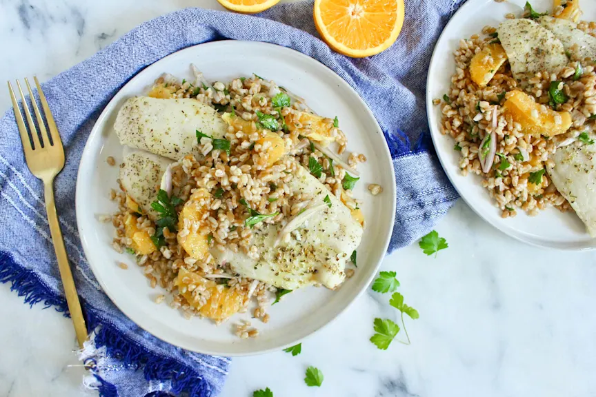 Easy White Fish Over a Citrus Farro Salad