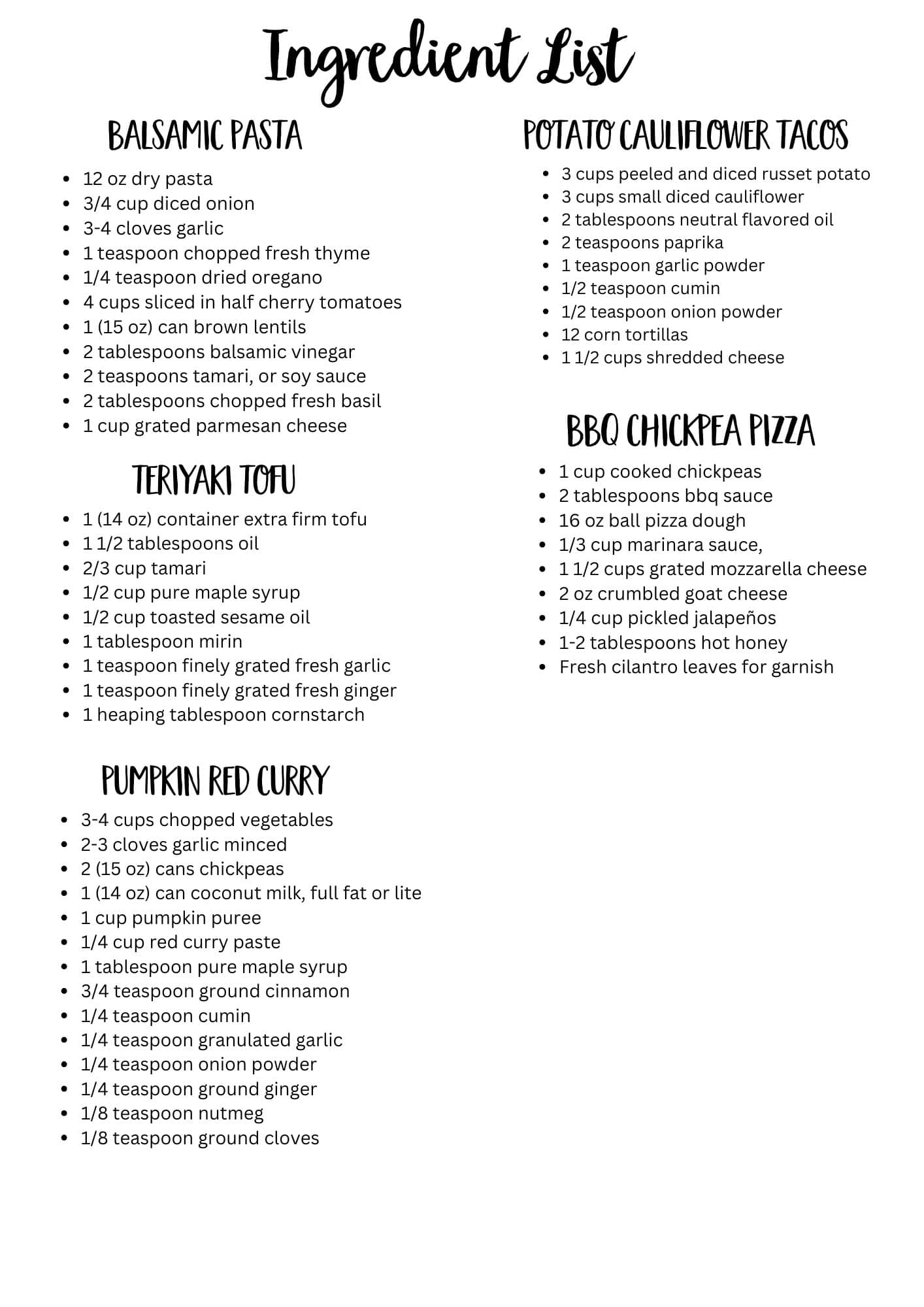 PRINTABLE INGREDIENT LIST