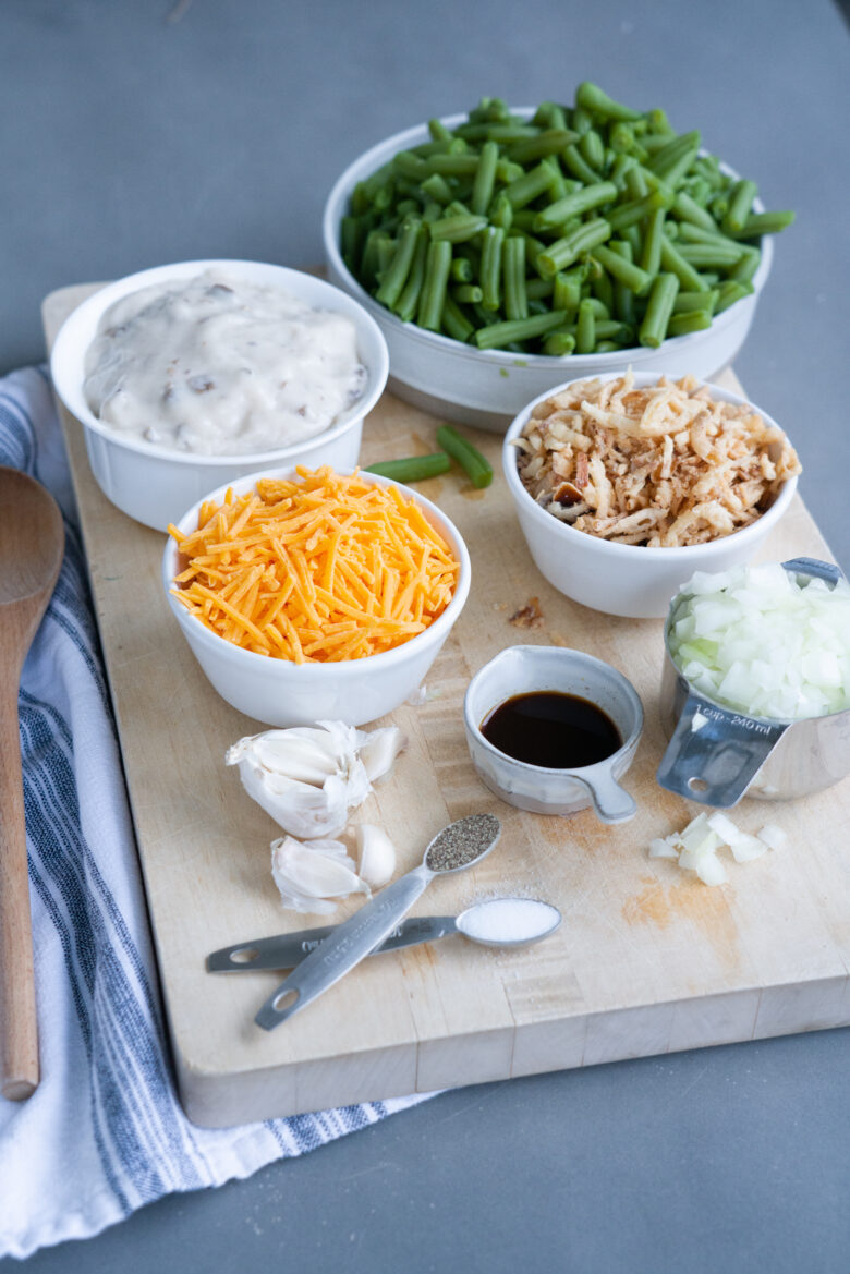 We benefit from the ease and comfort of utilizing canned inexperienced beans. Should you’d like to make use of contemporary inexperienced beans, trim and minimize beans into bite-size segments to make 6-7 cups of beans. Blanch and drain effectively earlier than utilizing on this recipe.