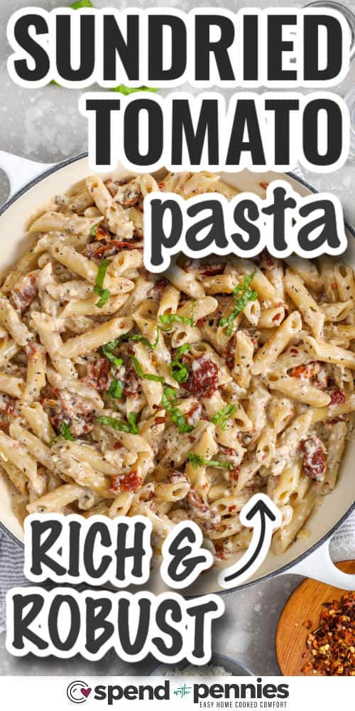 This Solar Dried Tomato Pasta is a fast weeknight dinner that’s prepared in about 20 minutes. Penne is tossed in a garlicky Parmesan cream sauce with oil-packed sun-dried tomatoes for a comfy, savory chunk.