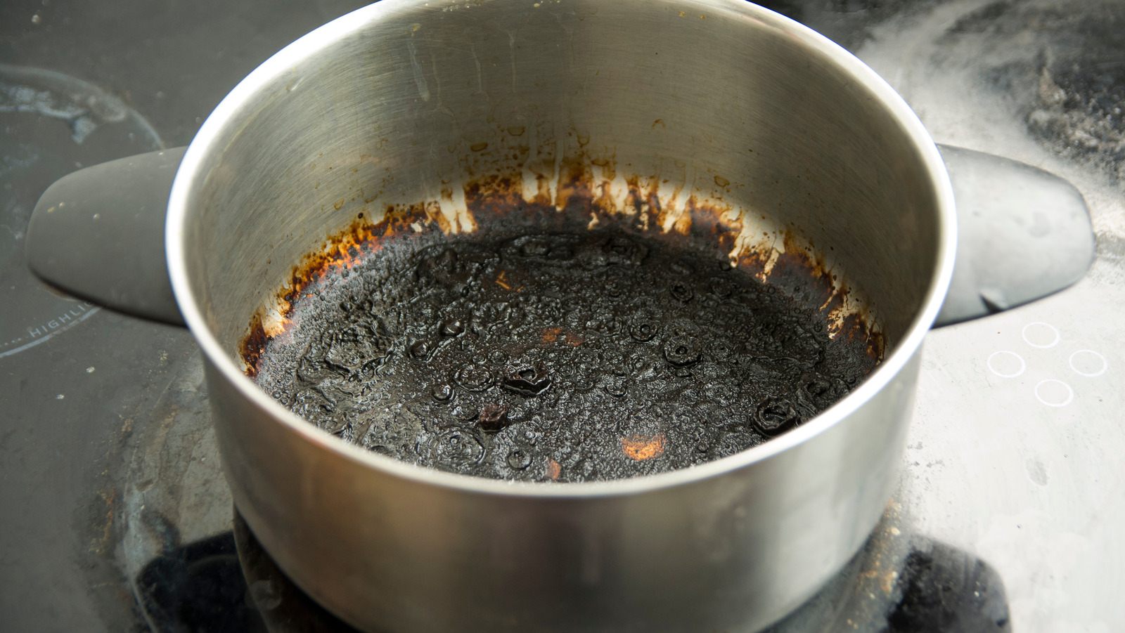 For burnt pans with out utilizing sugar cubes, attempt a dryer sheet. Put a couple of drops of dish cleaning soap within the pan, then a couple of inches of sizzling water, after which the dryer sheet. Let it sit for an hour, and then you definitely’ll discover the build-up has been loosened sufficient to get dumped out with the water. You too can boil a little bit of hydrogen peroxide and few drops of dish cleaning soap within the pan; as soon as it is boiled and foamed, let it sit for 10 to fifteen minutes, and, once more, the gunk ought to go proper with the liquid if you toss it out.