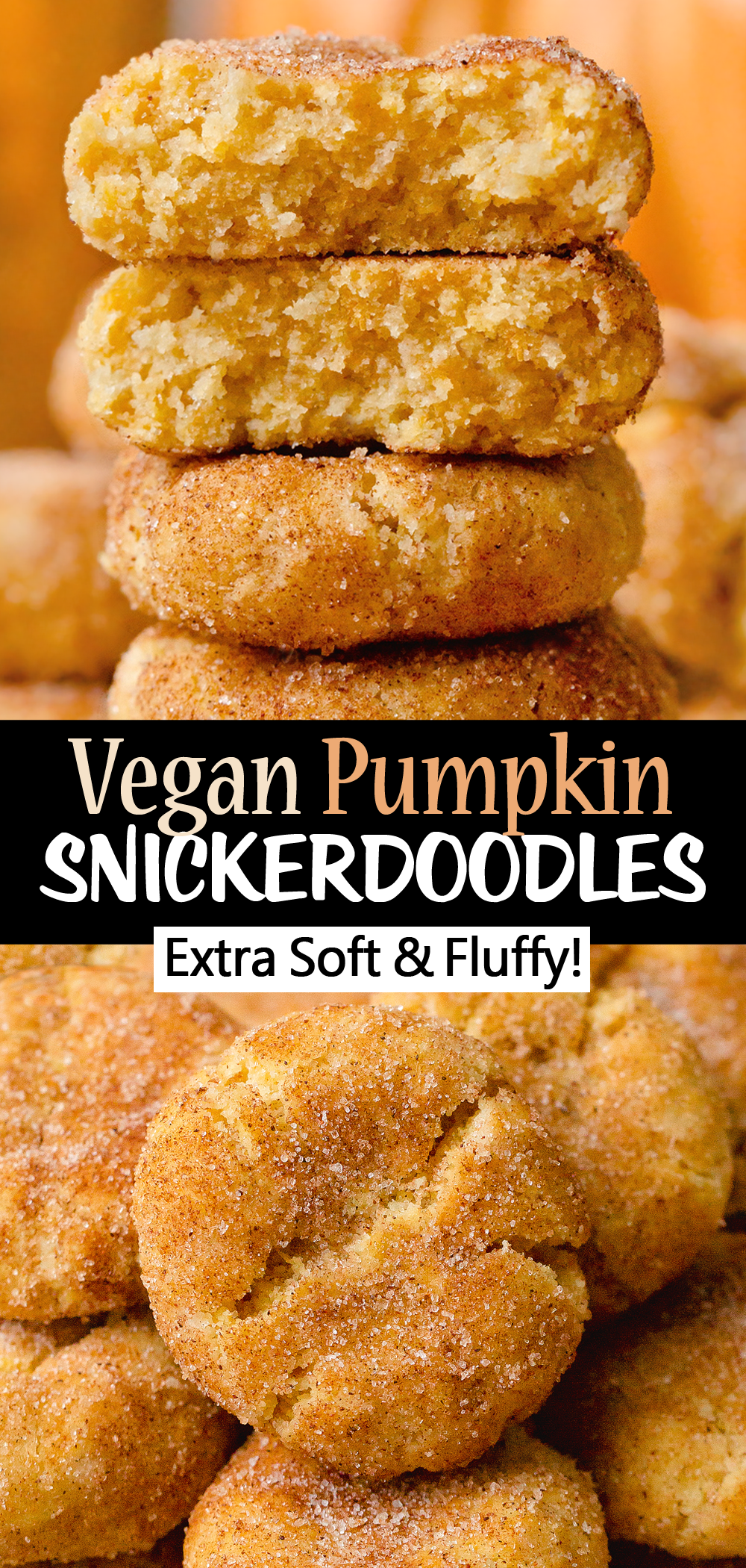 These are the softest, fluffiest, most scrumptious vegan pumpkin snickerdoodles you’ll ever put in your mouth!