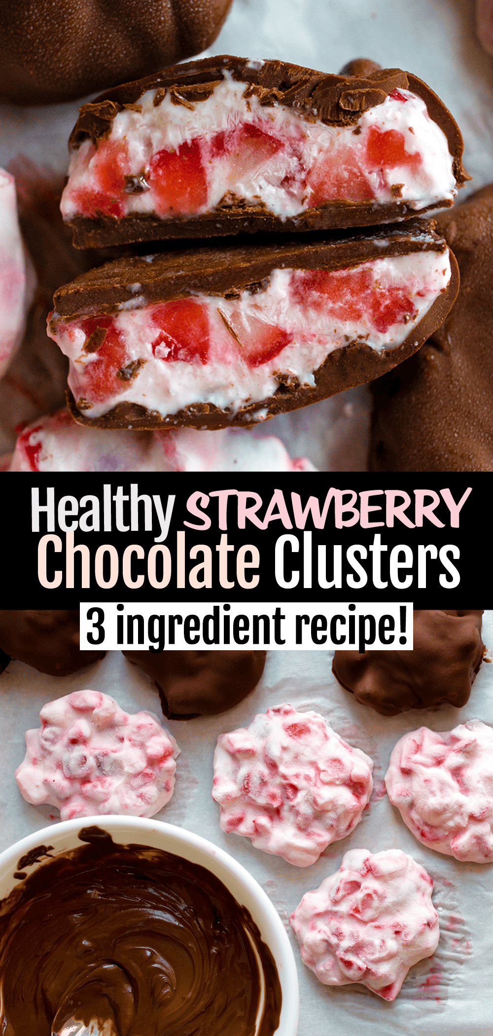 • 6. Take away the wholesome chocolate strawberry yogurt clusters from the freezer, and dip every within the chocolate. Return to the freezer for a couple of minutes to set the coating.